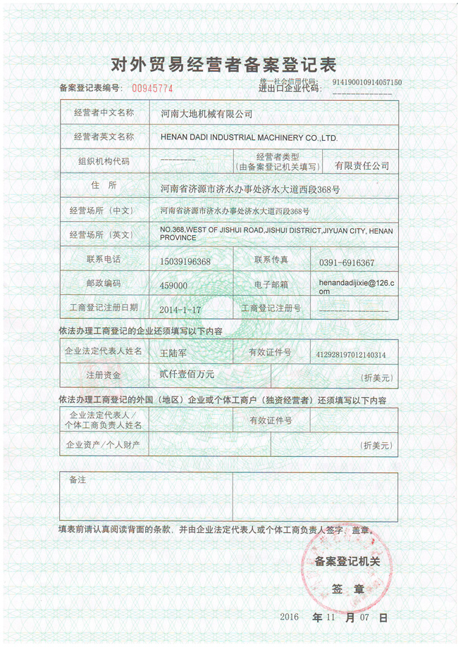 您好,歡迎訪問(wèn)河南大地機(jī)械有限公司官方網(wǎng)站!